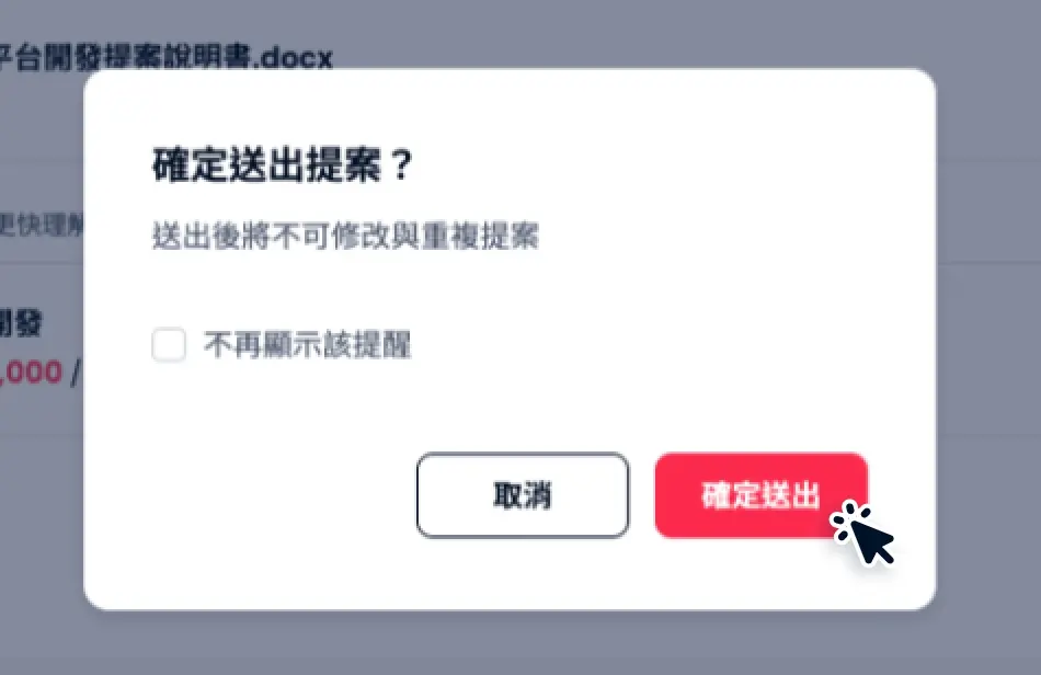 圖二:送出提案時會出現警示視窗,提醒你相關注意事項。