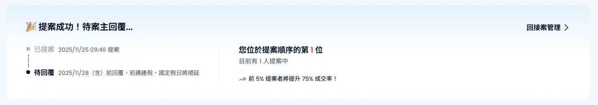 |「提案成功!待案主回覆」