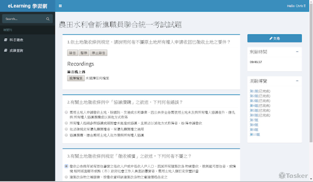 Web 出題系統 e-Learning 學習網