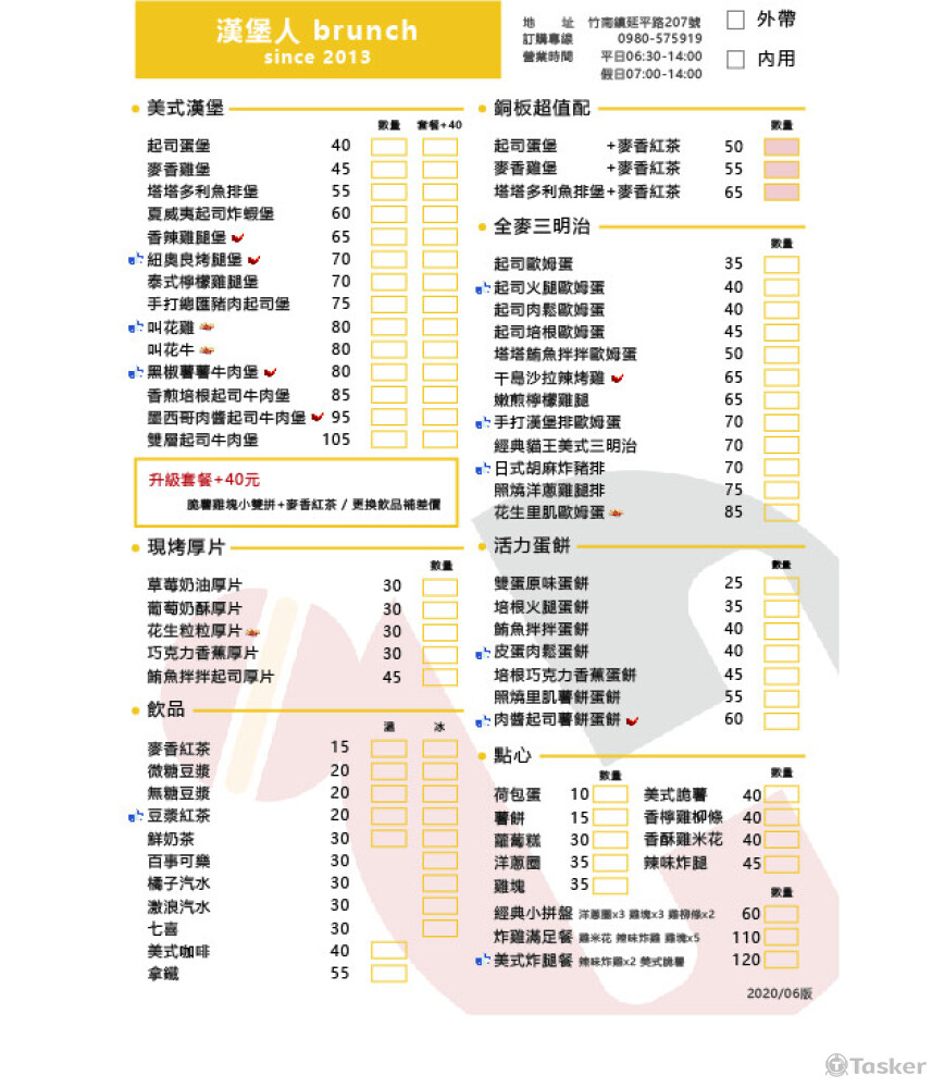 早餐店菜單