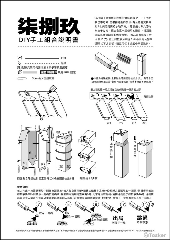 《柒捌玖》籤筒,⺠間博弈遊戲之⼀玩家可藉DIY紙籤筒磨練手藝,同時又能偕友一起遊戲享受歡樂趣味。