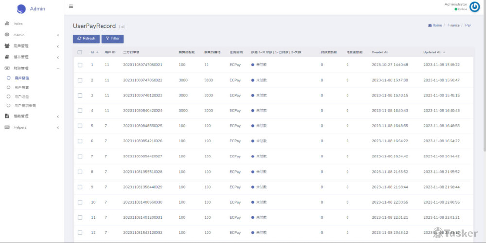 後臺系統 + 綠界金流