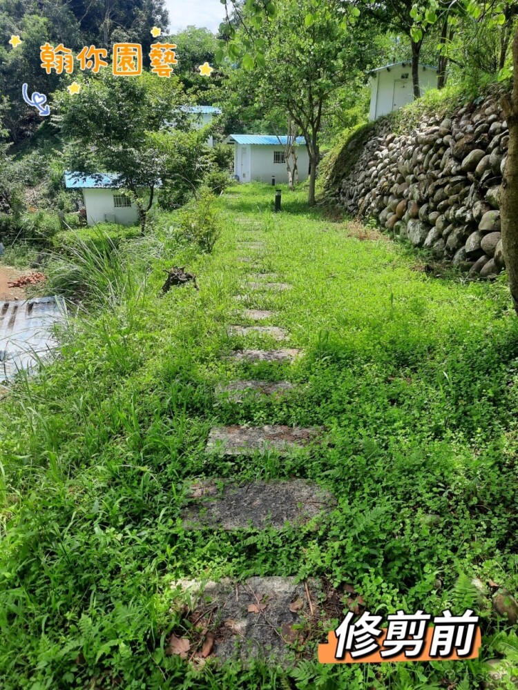 (修剪前)背式割草機,陡坡修剪。
