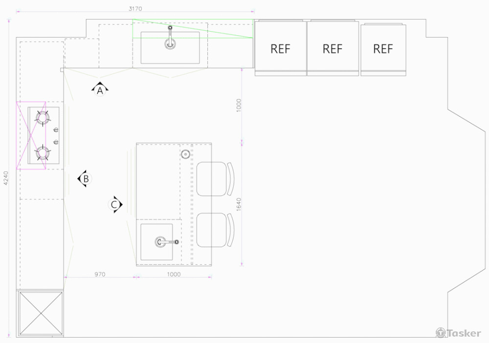 One-wall Open Kitchen with Island and Tall Cabinets