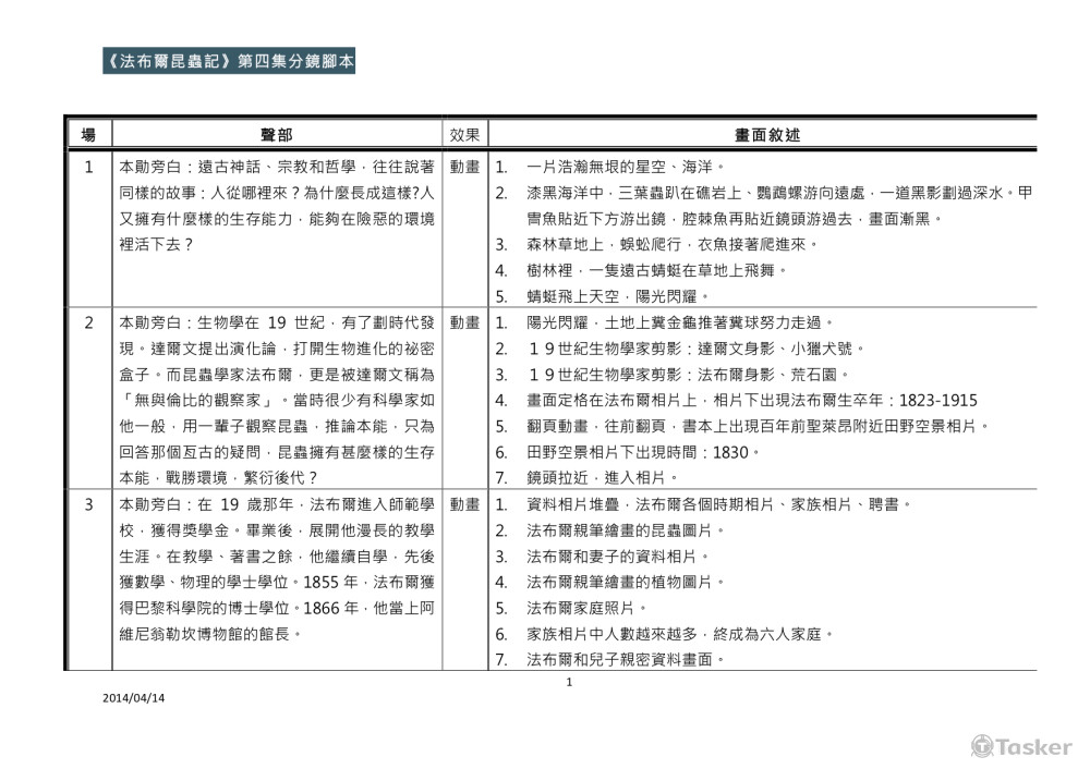 節目腳本《法布爾昆蟲記》