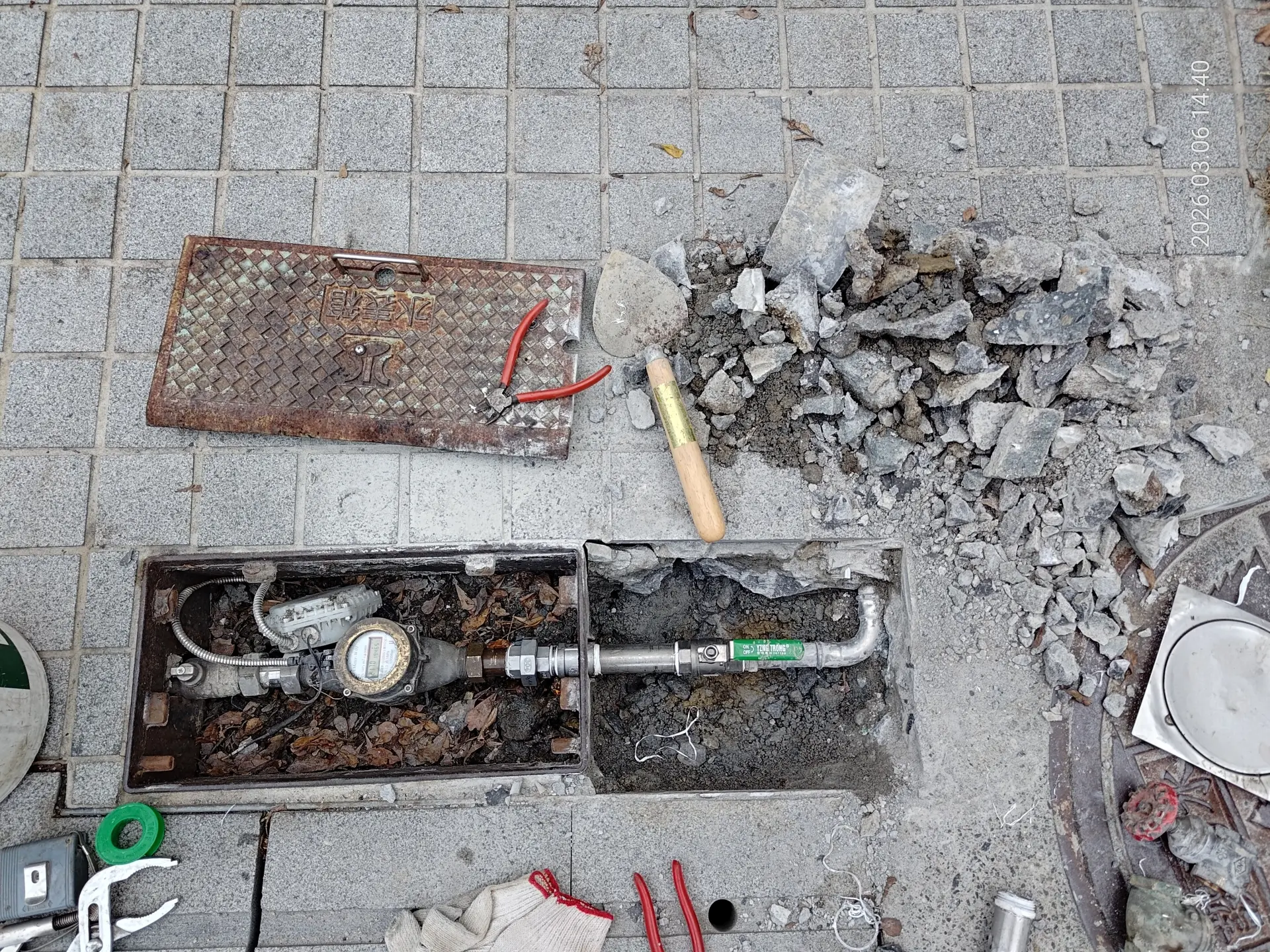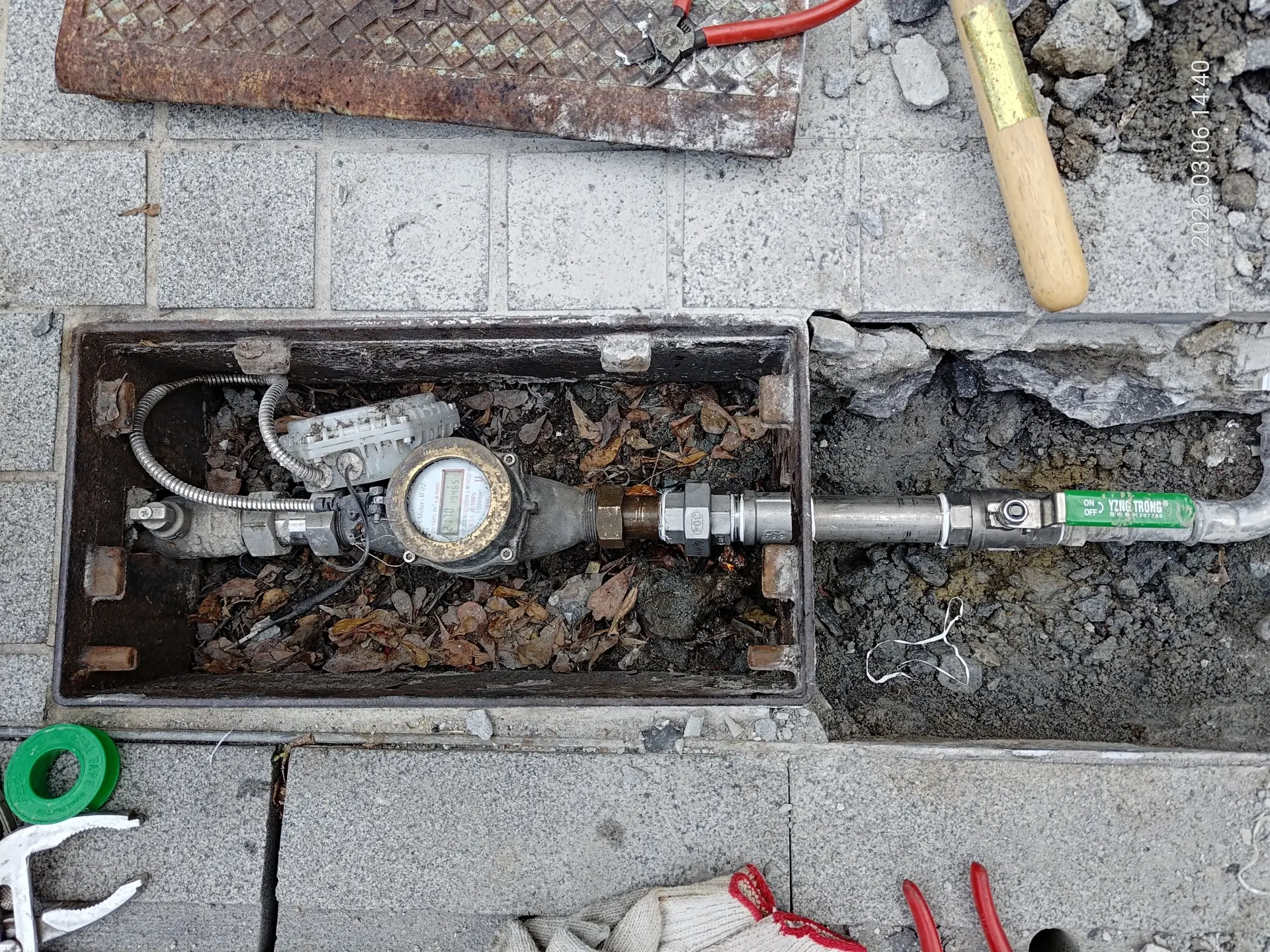 自來水水錶因為漏水,要挖開重新施工及維修