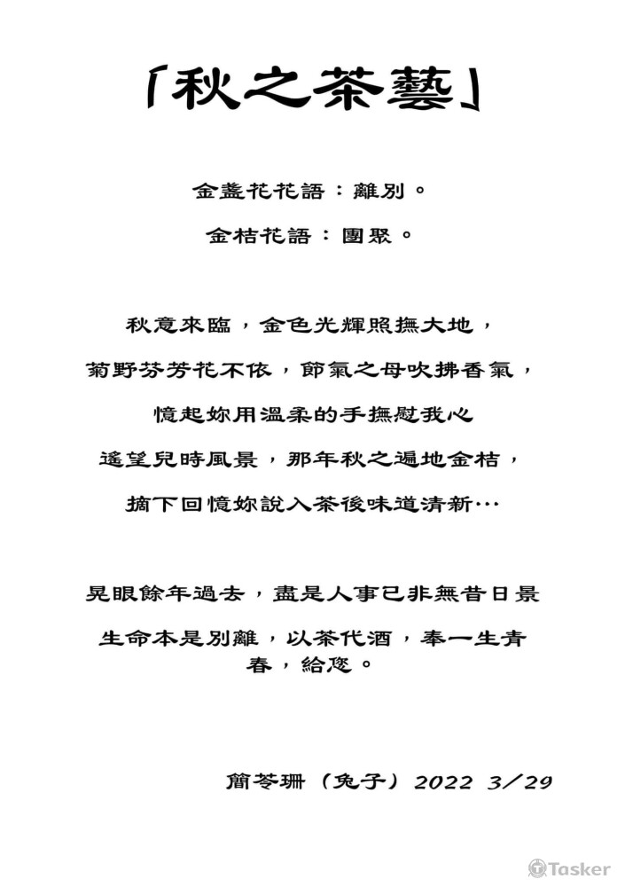 新竹農會邀請詩詞創作/茶席四季