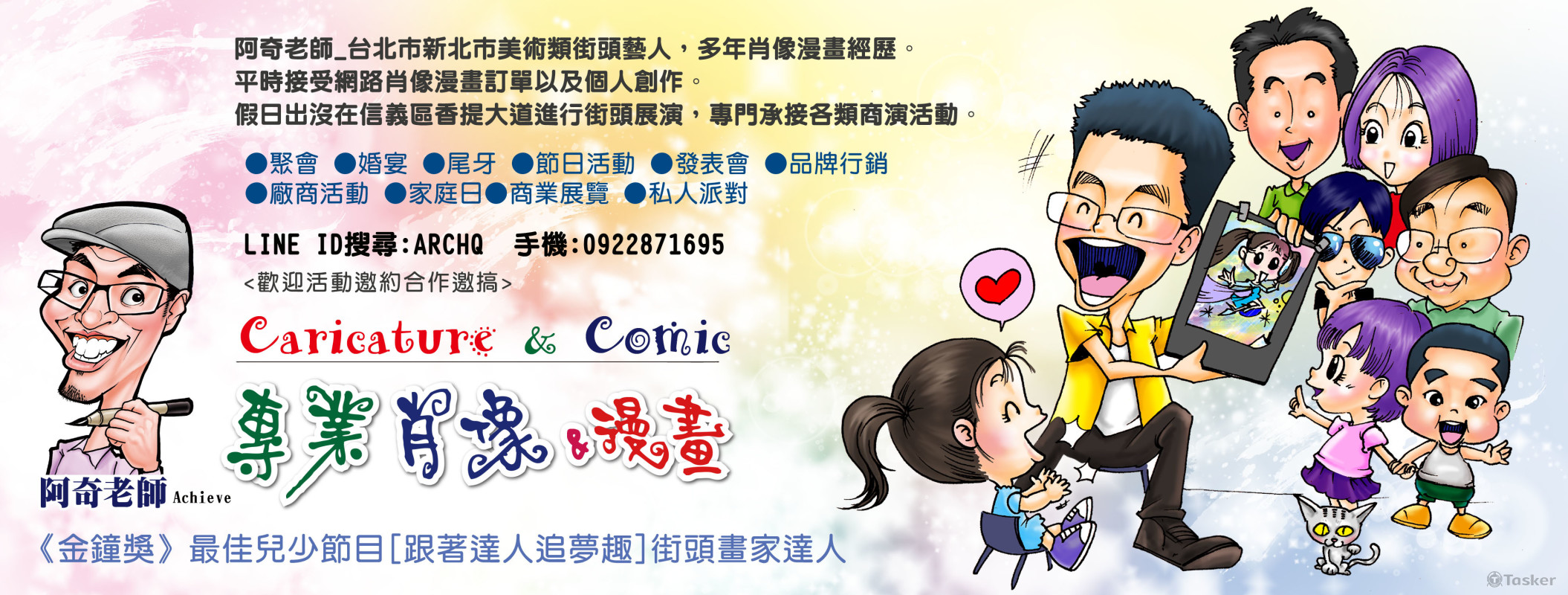 Q版畫|似顏繪|畫家表演|歡樂 驚喜 獨一無二 現場肖像漫畫活動表演似顏繪 人像活動 阿奇老師1:40秒廣告影片