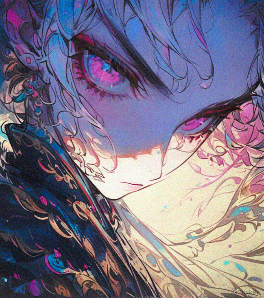 藍髮單一角色插畫
