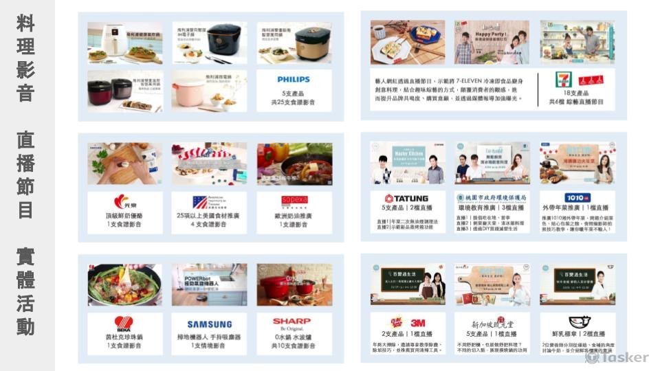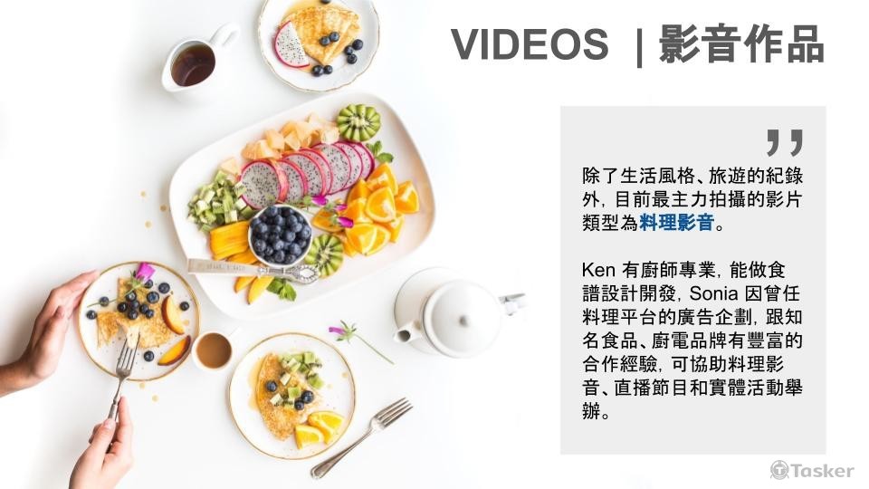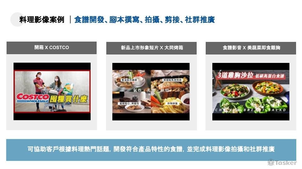 協助未上市的新品試菜, 根據功能開發食譜、撰寫腳本 並協助拍攝現場料理食物、拍攝