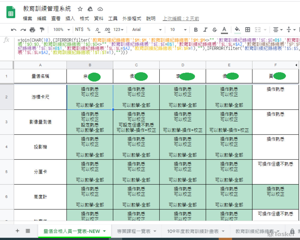 GOOGLE試算表函數設計(EXCEL函數)
