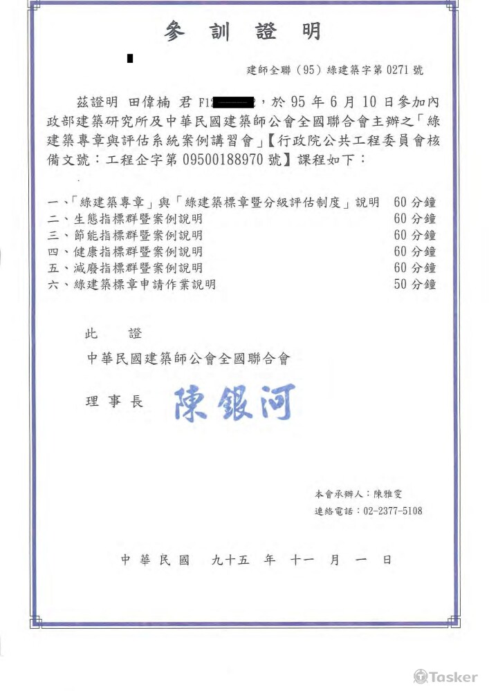 個人專業受訓證明